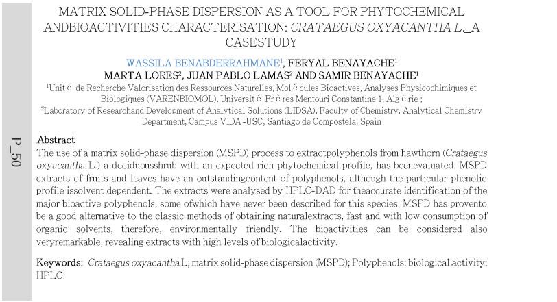 Crataegus oxyacantha L; Matrix solid-phase dispersion (MSPD); Polyphenols; Biological activity; HPLC.