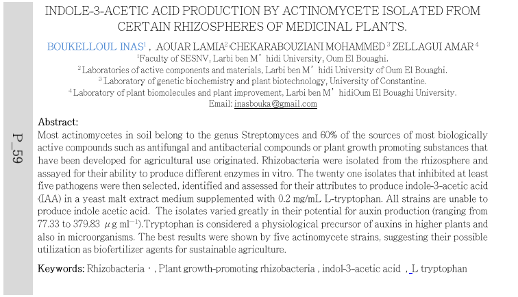 Indole-3-acetic acid production by actinomycete isolated from certain rhizospheres of medicinal plants