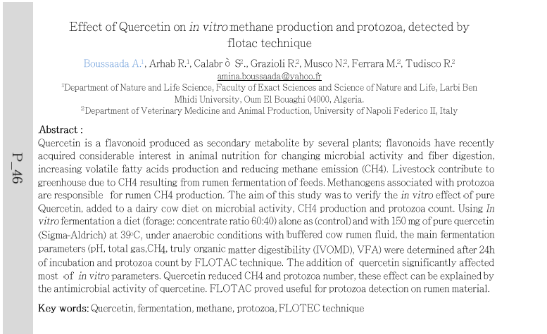 Effect of Quercetin on in vitro methane production and protozoa, detected by flotac technique